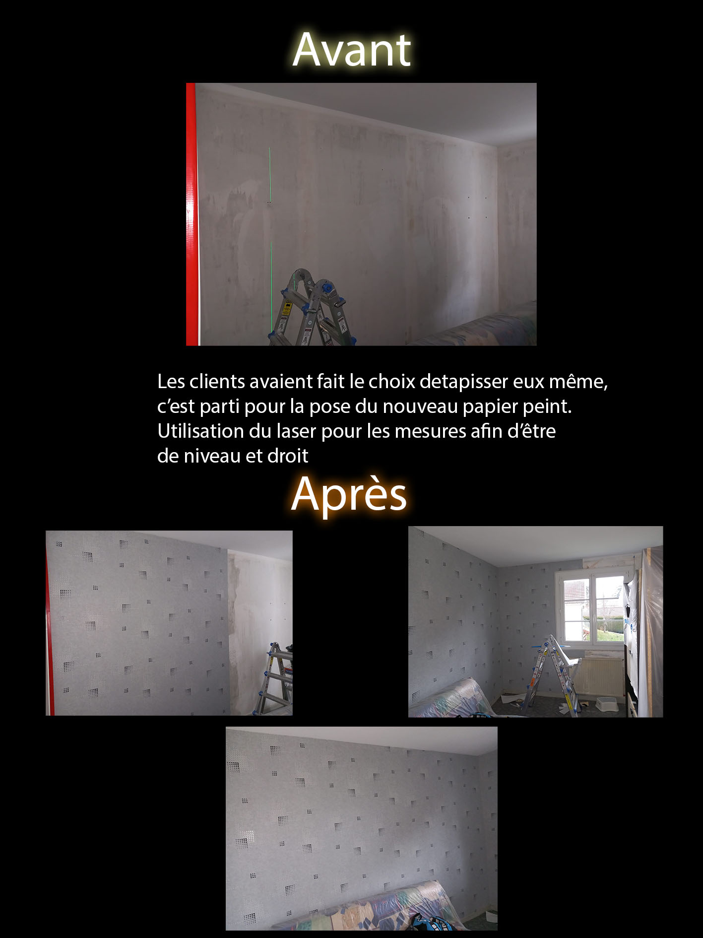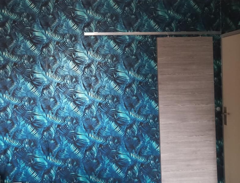Pose de papier peint à raccord avec installation d’une porte coulissante